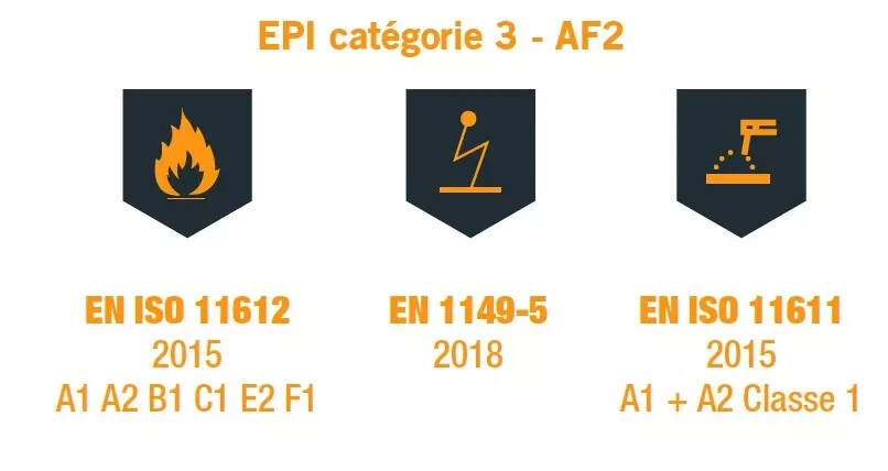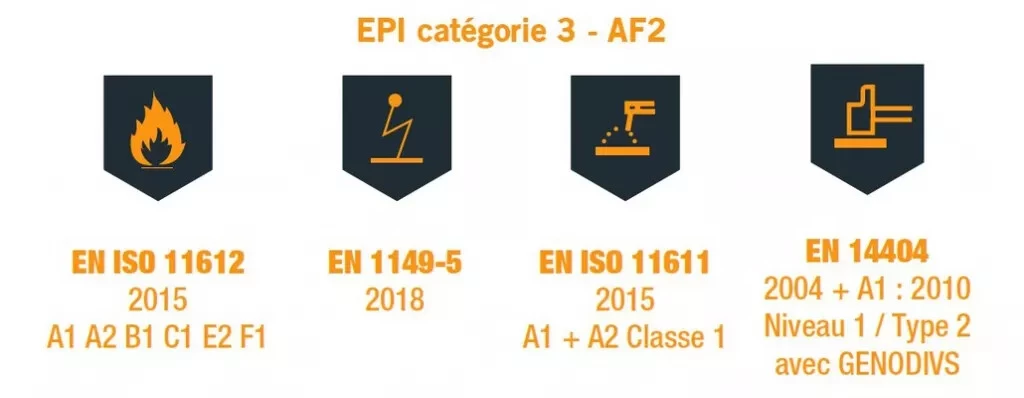 Normes : EN ISO 11612 – 11611 – EN 14404 – EN 1149-5