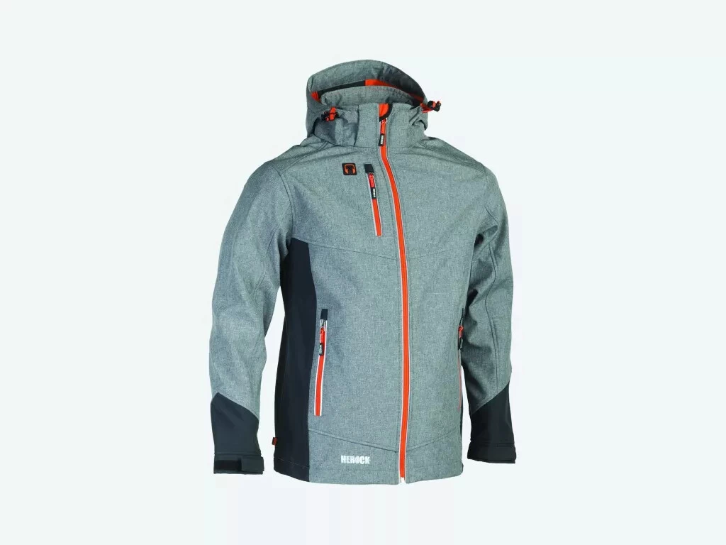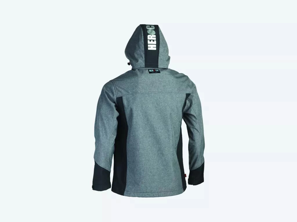 Veste respirante softshell à plusieurs poches, déperlante et coupe-vent avec capuche amovible et broderie imprimée Herock®.